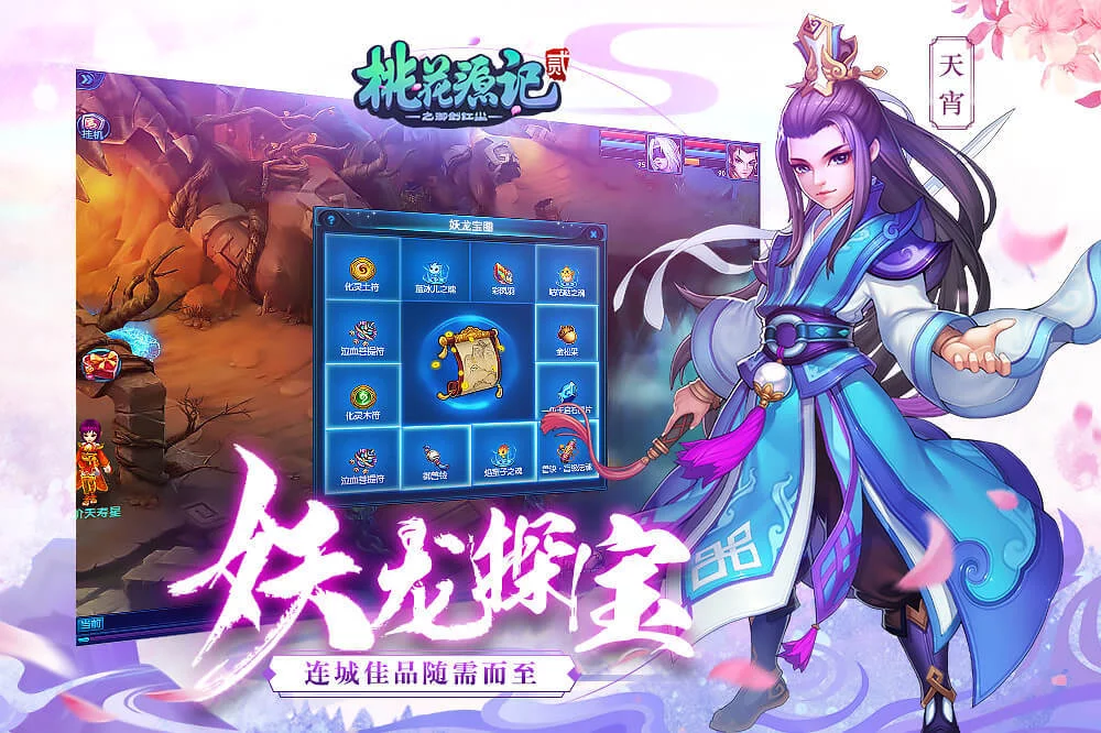 《桃花源记2》是回合制经典IP《桃花源记》系列新作。游戏内置无忧成长系统,轻松度过新手期。游戏无商城,道具可交易。丰富回合制经典玩法,更有海量趣味游戏让你全天不无聊。开局送坐骑和高资神兽,伴你同游世外桃源!