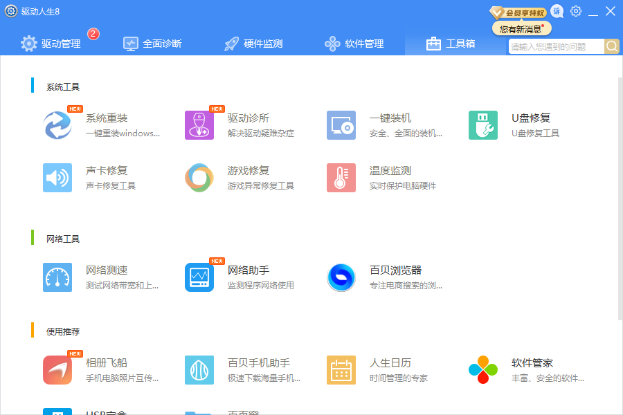 驱动人生网卡版专为解决有线/无线网卡的驱动问题而设计。如果您遇到网络问题,并且不知道哪个网卡驱动与您的电脑最适配,这时可以安装驱动人生网卡版,因为它内置的网卡驱动适用于所有常用的网络适配器,可以在没有网络连接的情况下直接安装网卡驱动。驱动人生网卡版还整合了驱动人生标准版的所有功能模块,能够为您快速定位并解决电脑问题。 如果当前您的电脑由于无网等原因无法下载“驱动人生网卡版”,可以事先在另一台有网络的电脑设备将其进行下载,然后再通过U盘等方式将其传输到无法上网的电脑设备并进行安装,由此可以直接安装网卡驱动,解决上网问题。